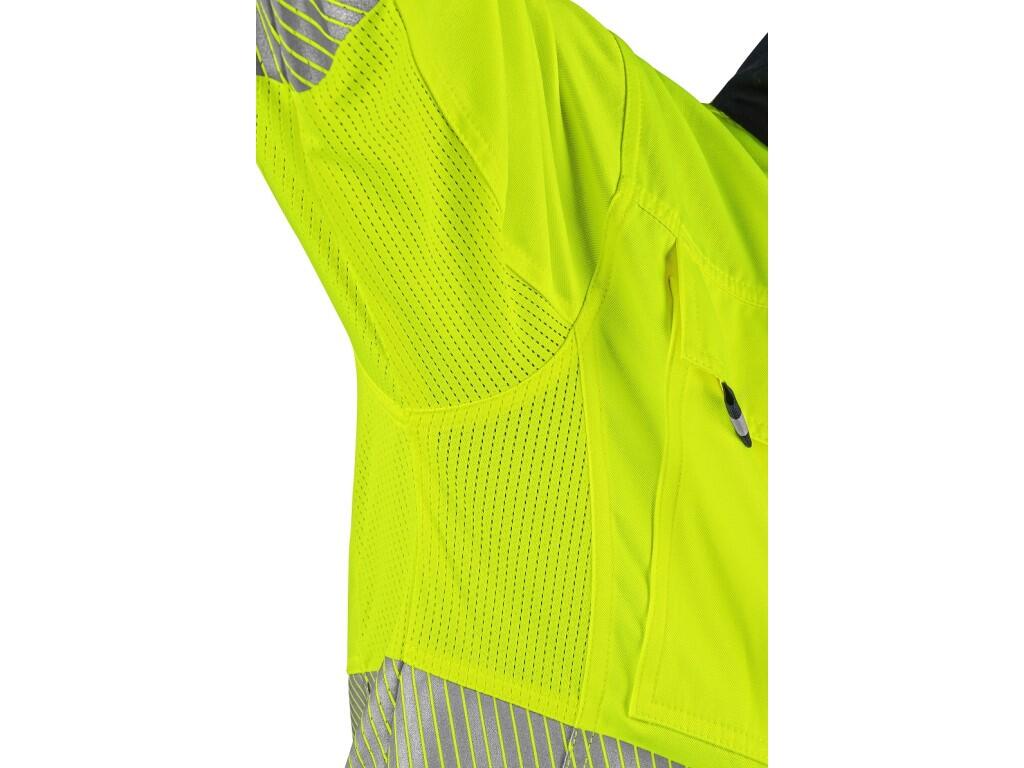 Pánská výstražná blůza CXS HALIFAX je určena pro práci v letním období. Je vybavena segmentovanými reflexními pásky o šířce 5 cm, které zajišťují vysokou viditelnost a přitom zachovávají pružnost materiálu. Blůza má zapínání na zip, které je kryté klopou s kovovými druky. Je vybavena náprsními kapsami s klopou na suchý zip a skrytými kapsami na zip, a také bočními kapsami na zip. Manžety rukávů a spodní lem lze jednoduše utáhnout pomocí suchého zipu. V podpaží a na zádech je použit síťovaný materiál pro lepší mikrocirkulaci vzduchu a odvod tepla. V kombinaci s kalhotami nebo kalhotami s náprsenkou blůza CXS HALIFAX splňuje ochrannou kategorii 3 dle EN ISO 20471. Doporučené použití: letní pracovní oděv, stavebnictví, silniční práce, logistika, údržba, řidiči, letecká a lodní doprava, záchranáři či technické služby.