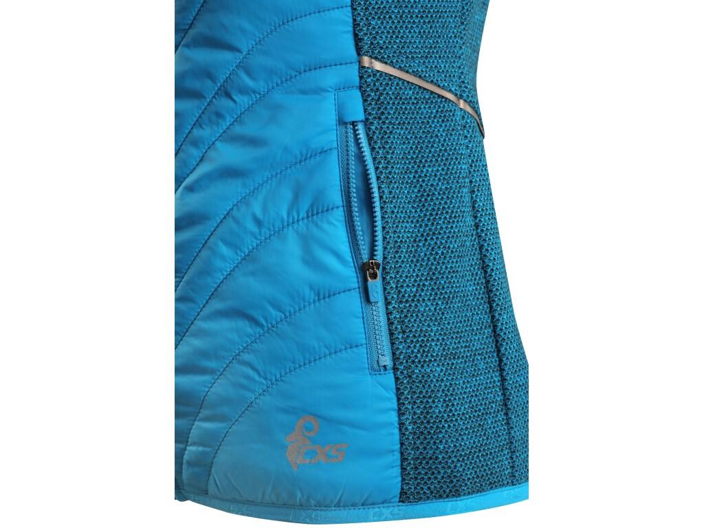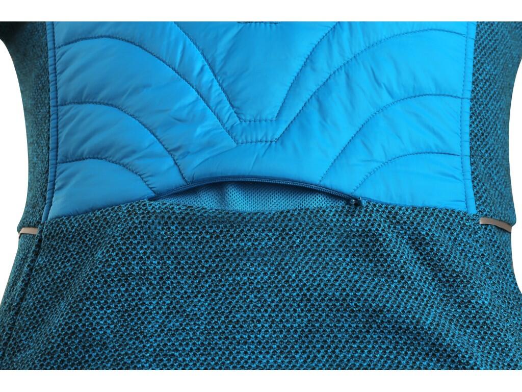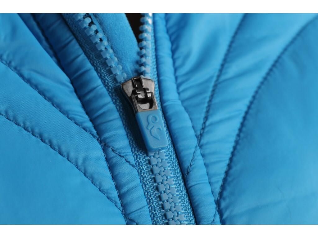 Dámská vycházková bunda z kombinovaných materiálů. Prošívaná část je lehce zateplená, zatímco kapuce, boky a rukávy jsou z příjemné pleteniny. Bunda má 2 boční kapsy na zip, zipovou ventilaci na zádech a reflexní doplňky. Pas a rukávy jsou ukončeny pružnou gumičkou.