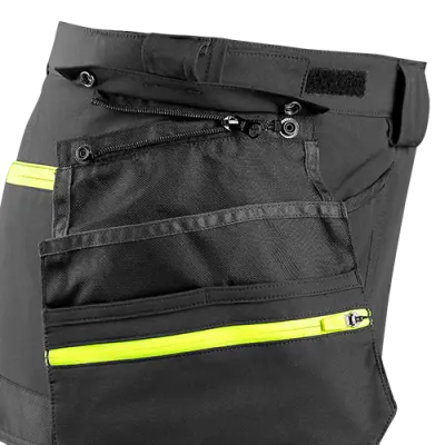 Pánské výstražné kalhoty s moderním, užším střihem nohavic a segmentovanými 5cm reflexními pruhy pro maximální viditelnost. Materiál s 4-way stretch konstrukcí se přizpůsobí pohybům ve všech směrech, což zajišťuje pohodlí a volnost. Kalhoty jsou vybaveny flexibilním pasem s možností přizpůsobení se postavě a poutky na opasek. Dále mají dvě přední kapsy, dvě odnímatelné kapsy na nářadí vyztužené odolným materiálem CORDURA®, kapsu na stehně se zipem a odnímatelným pouzdrem na ID kartu, multifunkční boční kapsu a dvě zadní kapsy se zesíleným dnem z CORDURA®. Ventilace se zipem v zadní části stehen přispívá k lepší prodyšnosti, kolena jsou zpevněna CORDURA® materiálem s možností vložení kolenních výztuh, a spodní část nohavic je rovněž zesílena pro delší životnost. Kalhoty umožňují prodloužení střihu pro vyšší postavu díky EASY-PROLONG systému nohavic.