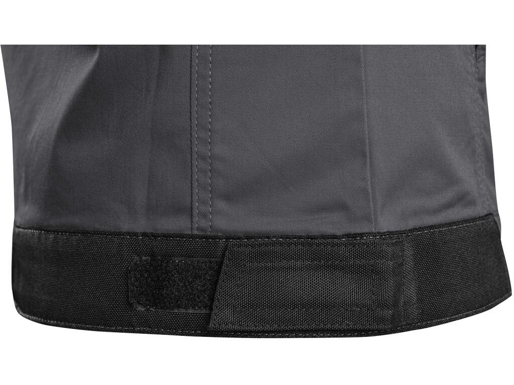 Ladies` work jacket, stretch fabric allowing free movement, shoulders reinforced by 600D polyester, sleeves with elastic cuff, flap pocket on the left sleeve, covered zipper fastening with snaps, chest pockets - with snap and zipper, side zipper pock