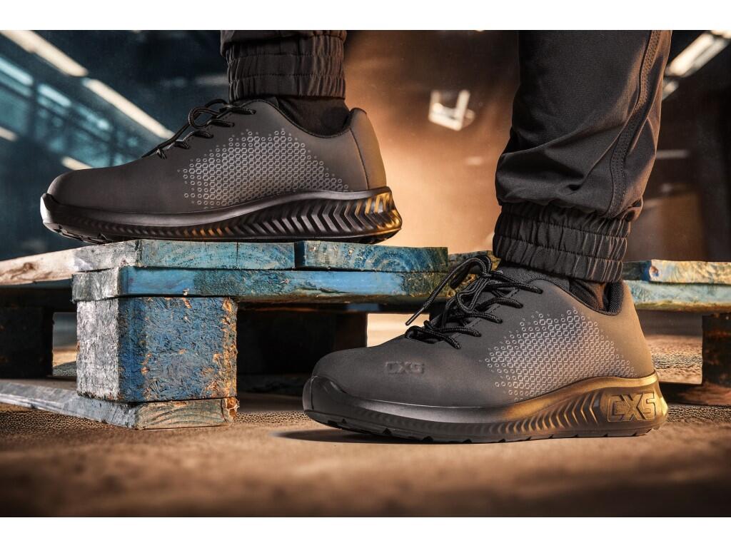 Work shoes with a hydrophobic-treated upper are versatile, durable, and comfortable footwear, featuring a reflective element on the heel. They are suitable for everyday, year-round use across a wide range of working environments. The upper made of durable smooth microfiber is easy to maintain and offers long service life. The breathable Mesh textile lining combined with microfiber and a HI-POLY insole ensures optimal comfort inside the footwear, even during prolonged wear. The PU–PU outsole with the CXS logo is slip-resistant and oil-resistant, and provides excellent energy return in the heel area, helping to reduce foot fatigue.