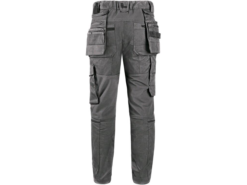 Men’s work trousers in a modern slim-fit cut. The combination of high-quality blend material with elastane and 4-way stretch construction in exposed areas allows easy and comfortable movement. The trousers are equipped with flexible waist with adjustable size and belt loops, inner waist with antislip rubber printing, 2 front pockets, 2 removable tool pockets reinforced with CORDURA®, thigh zipper pockets with possibility of ventilation, side pocket with zipper pocket, 2 back pockets (one with zipper) reinforced with CORDURA®, folding ruler pocket with other pockets, ergonomic knees reinforced with CORDURA® with side opening for knee pads and ventilation, ID card holder, leg bottom reinforced with CORDURA®, reflective accessories. The trousers are equipped with the EASY-PROLONG system, which allows for easy length extension by releasing the seam on the legs, making them suitable for taller individuals. Recommended application: engineering, construction, light industry, automotive, logistics, warehouse, spedition, car services, maintenance, assembly, agriculture, gardening, hobby and leisure.