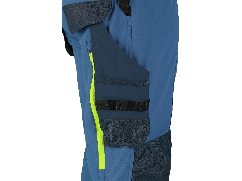 Men’s working trousers with modern narrow cut of legs with contrasting color and reflective accessories. The 4-way stretch construction allows material to be stretched in all 4 directions and hence easy and free movement. The high percentage of nylon guarantees fast drying. The trousers are equipped with flexible waist with adjustable size and belt loops, 2 front pockets, 2 detachable tool pockets reinforced with CORDURA®, thigh zipper pocket with removable ID card holder, multifunctional side pocket, 2 back pockets at the bottom reinforced with CORDURA®, zipper ventilation on the thighs, knees reinforced with CORDURA® with the opening for knee pads, leg bottom reinforced with CORDURA®. The trousers are equipped with the EASY-PROLONG system, which allows easy extension of the cut to a taller figure by releasing the seam on the legs. Recommended application: engineering, construction, light industry, automotive, logistics, warehouse, spedition, car services, maintenance, assembly, agriculture, gardening, hobby and leisure.