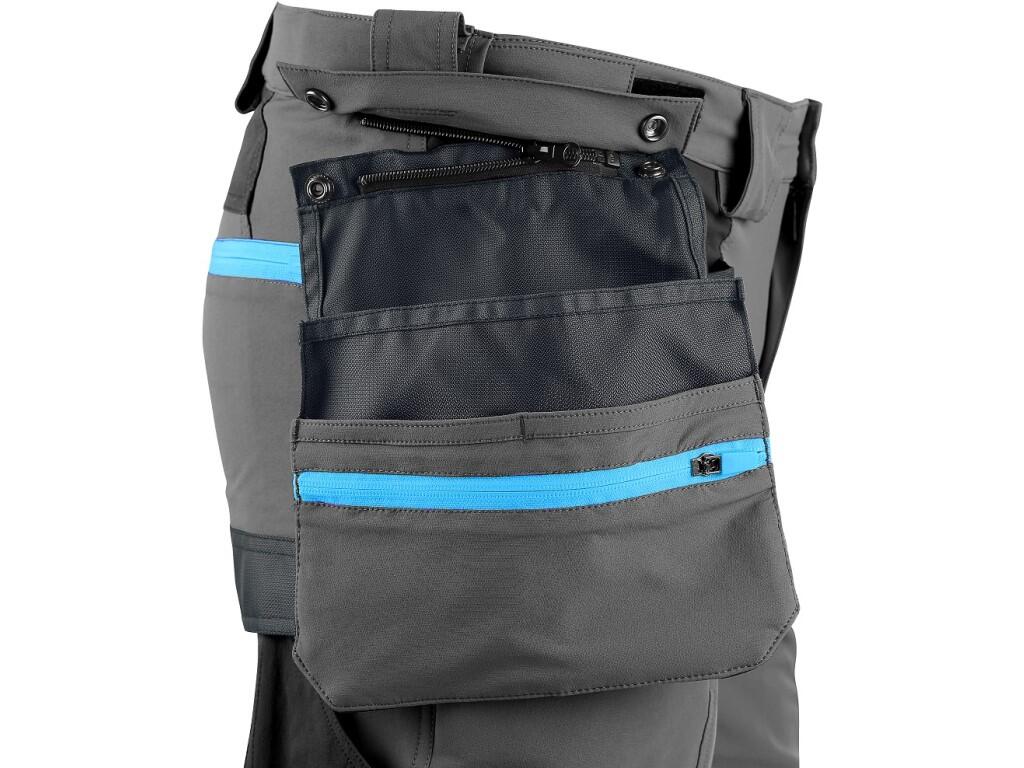 Men’s working trousers with modern narrow cut of legs with contrasting color and reflective accessories. The 4-way stretch construction allows material to be stretched in all 4 directions and hence easy and free movement. The high percentage of nylon guarantees fast drying. The trousers are equipped with flexible waist with adjustable size and belt loops, 2 front pockets, 2 detachable tool pockets reinforced with CORDURA®, thigh zipper pocket with removable ID card holder, multifunctional side pocket, 2 back pockets at the bottom reinforced with CORDURA®, zipper ventilation on the thighs, knees reinforced with CORDURA® with the opening for knee pads, leg bottom reinforced with CORDURA®. The trousers are equipped with the EASY-PROLONG system, which allows easy extension of the cut to a taller figure by releasing the seam on the legs. Recommended application: engineering, construction, light industry, automotive, logistics, warehouse, spedition, car services, maintenance, assembly, agriculture, gardening, hobby and leisure.