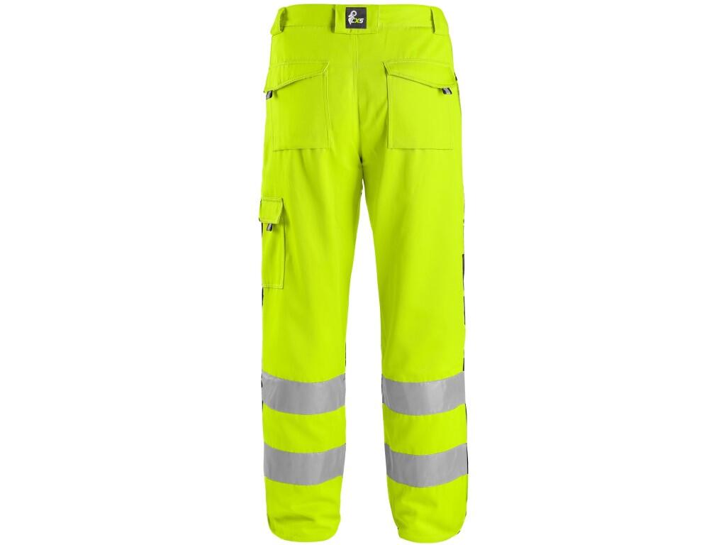 Men’s high visible trousers - shortened version for height 170-176 cm. Waist with belt loops and side elastic bands, 2 front pockets, 2 back pockets, covered front zipper fastening, left side pocket with smaller one for the pencil, 3M reflective tapes (width 7 cm). Recommended application: construction, road workers, drivers, maintenance, logistics, aviation and shipping, garbage collectors, rescuers.