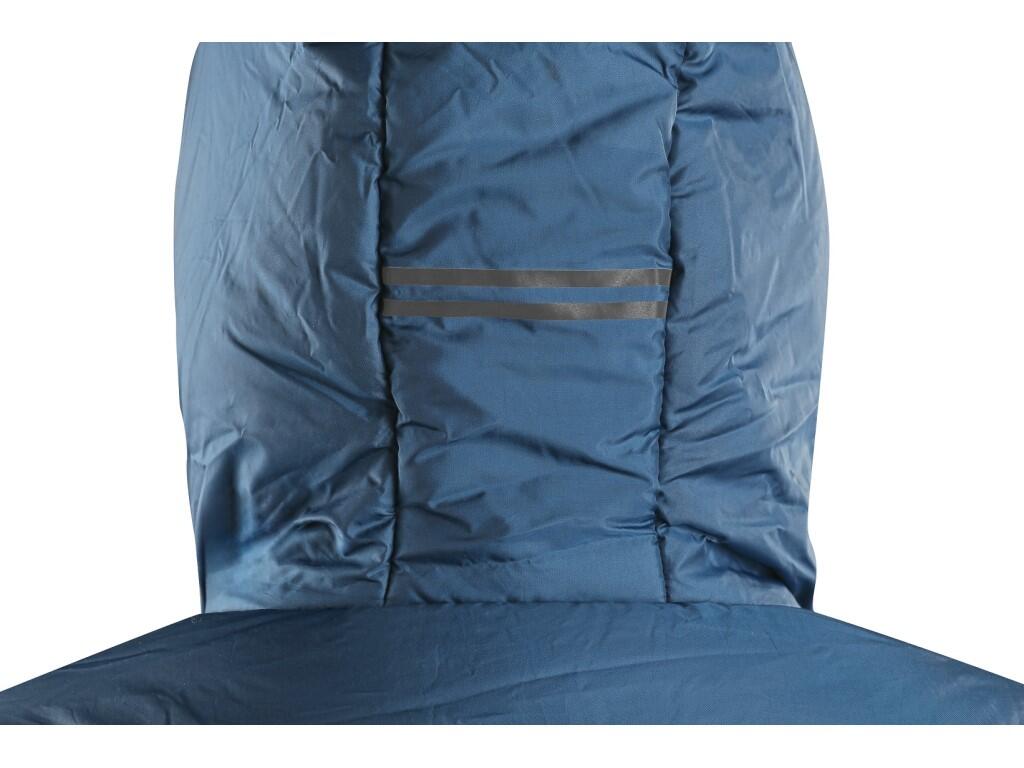Dámský zateplený kabát s kapucí, oboustranným zipem a bočním rozparkem na druky. Boční kapsy na zip, rukávy ukončeny pružnou manžetou, černé reflexní doplňky na kapuci, rozparku a podél hlavního zipu, vnitřní kapsa na zip.