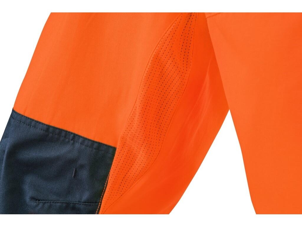 Pánské výstražné kalhoty CXS HALIFAX jsou určeny pro práci v letním období. Jsou vybaveny segmentovanými reflexními pásky o šířce 8 cm, které zajišťují vysokou viditelnost a přitom zachovávají pružnost materiálu. Kalhoty mají elastický pas s gumou v bocích a poutky na opasek. Kryté zapínání na zip, dvě přední kapsy, dvě zadní kapsy s klopou na suchý zip a pravá boční kapsa na zip poskytují dostatek praktického úložného prostoru. Zdvojená kolena zvyšují odolnost a umožňují vložení kolenních výztuh pro vyšší komfort při práci v kleče. Na vnitřní straně stehen a zadní části kolen je použit síťovaný materiál pro lepší mikrocirkulaci vzduchu a odvod tepla. V kombinaci s blůzou CXS HALIFAX splňují ochrannou kategorii 3 dle EN ISO 20471. EASY-PROLONG systém umožňuje prodloužení délky nohavic na vyšší postavu, a to uvolněním švu na nohavicích. Doporučené použití: letní pracovní oděv, stavebnictví, silniční práce, logistika, údržba, řidiči, letecká a lodní doprava, záchranáři či technické služby.
