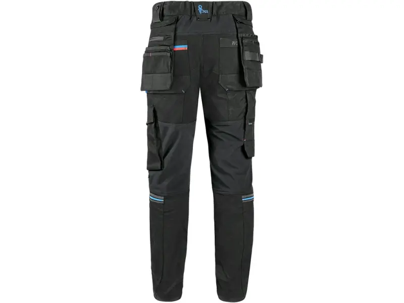 Pánské pracovní kalhoty moderního střihu slim-fit. Kombinace kvalitního směsového materiálu s elastanem a 4-way stretch materiálu v exponovaných místech umožňuje volný a pohodlný pohyb. Vybavení kalhot: flexibilní pas s možností upravení velikosti a poutky na opasek, na vnitřní straně pasu protiskluzový potisk, 2 přední kapsy, 2 odnímatelné kapsy na nářadí vyztuženy materiálem CORDURA®, stehenní zipové kapsy s možností ventilace, boční kapsa se zipovou kapsou, 2 zadní kapsy (jedna zipová) vyztuženy materiálem CORDURA®, kapsa na skládací metr s dalšími přihrádkami, ergonomicky tvarovaná kolena zesílena materiálem CORDURA® s možností vložení kolenních výztuh bočním vkládáním a ventilací, kapsa na ID kartu, spodní část nohavic vyztužena materiálem CORDURA®, reflexní doplňky. Kalhoty jsou vybaveny EASY-PROLONG systémem, který umožňuje snadné prodloužení střihu na vyšší postavu uvolněním švu na nohavicích. Doporučené použití: strojírenství, stavebnictví, lehký průmysl, automobilový průmysl, logistika, skladování, spedice, autoservisy, údržba, montáže, zemědělství, zahrada, hobby a volný čas.