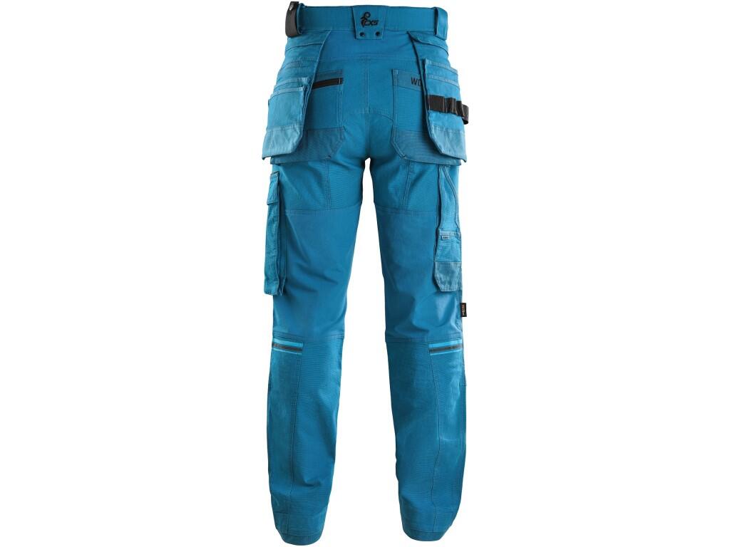 Pánské pracovní kalhoty moderního střihu slim-fit. Kombinace kvalitního směsového materiálu s elastanem a 4-way stretch materiálu v exponovaných místech umožňuje volný a pohodlný pohyb. Vybavení kalhot: flexibilní pas s možností upravení velikosti a poutky na opasek, na vnitřní straně pasu protiskluzový potisk, 2 přední kapsy, 2 odnímatelné kapsy na nářadí vyztuženy materiálem CORDURA®, stehenní zipové kapsy s možností ventilace, boční kapsa se zipovou kapsou, 2 zadní kapsy (jedna zipová) vyztuženy materiálem CORDURA®, kapsa na skládací metr s dalšími přihrádkami, ergonomicky tvarovaná kolena zesílena materiálem CORDURA® s možností vložení kolenních výztuh bočním vkládáním a ventilací, kapsa na ID kartu, spodní část nohavic vyztužena materiálem CORDURA®, reflexní doplňky. Kalhoty jsou vybaveny EASY-PROLONG systémem, který umožňuje snadné prodloužení střihu na vyšší postavu uvolněním švu na nohavicích. Doporučené použití: strojírenství, stavebnictví, lehký průmysl, automobilový průmysl, logistika, skladování, spedice, autoservisy, údržba, montáže, zemědělství, zahrada, hobby a volný čas.