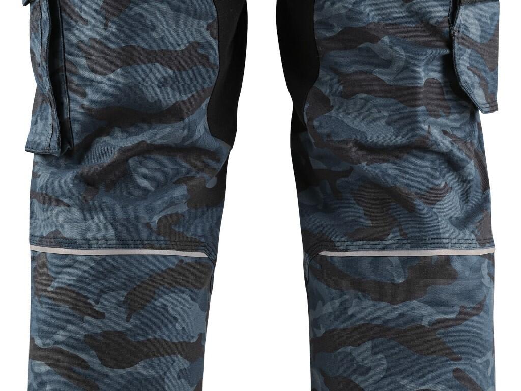 Pánské montérkové kalhoty, strečová tkanina umožňující volný pohyb, pas s poutky na opasek, přední kapsy s kapsou na zip, multifunkční kapsy na obou stranách, kolena zesílena 600D polyesterem s možností vložení kolenních výztuh, dvě zadní kapsy - jedna s klopou, zadní spodní lem nohavice vyztužen 600D polyesterem, reflexní doplňky. Doporučené použití: strojírenství, stavebnictví, lehký průmysl, automobilový průmysl, logistika, skladová manipulace, spedice, autoservisy, údržba, montáže, zemědělství, zahrada, hobby. Kalhoty jsou vybaveny EASY-PROLONG systémem, který umožňuje snadné prodloužení střihu na vyšší postavu uvolněním švu na nohavicích.