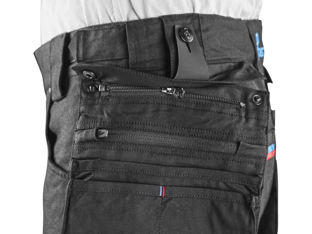 Pánské pracovní kraťasy s kontrastními barevnými doplňky. Kombinace kvalitního směsového materiálu s elastanem a 4-way stretch materiálu v exponovaných místech umožňuje volný a pohodlný pohyb. Vybavení: flexibilní pas s možností upravení velikosti a poutky na opasek, protiskluzový potisk na vnitřní straně pasu, 2 přední kapsy, 2 odnímatelné kapsy na nářadí vyztuženy materiálem CORDURA®, stehenní zipové kapsy s možností ventilace a kapsou na ID kartu, boční kapsa se zipovou kapsou, 2 zadní kapsy (jedna zipová) vyztuženy materiálem CORDURA®, kapsa na skládací metr s dalšími přihrádkami, reflexní doplňky. Doporučené použití: letní pracovní oděv, strojírenství, stavebnictví, lehký průmysl, automobilový průmysl, logistika, skladování, spedice, autoservisy, údržba, montáže, zemědělství, zahrada, hobby a volný čas.