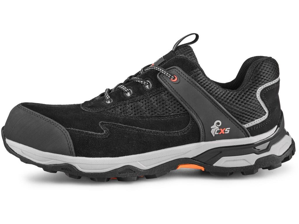 Bezpečnostní polobotka s ocelovou špicí, reflexní doplňky. Materiál: svršek z 1,4 - 1,6 mm hovězí broušené kůže kombinovaný s prodyšnou tkaninou a PU doplňky, podšívka z prodyšné oděru odolné textilie. Podešev: kombinace materiálu EVA, TPUa gumy, olejivzdorná, antistatická, protiskluzová a odolná vůči kontaktnímu teplu do 300 °C.