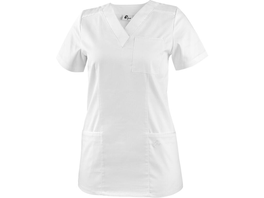Wygodna bluza damska. Kieszeń na piersi z mniejszą kieszenią na ołówek, 2 dolne kieszenie. Zalecane zastosowanie: prywatne gabinety lekarskie, kliniki i różne placówki medyczne, pogotowie ratunkowe, uzdrowiska i kąpiele, instytucje opieki społecznej, apteki, szkoły o profilu medycznym.
