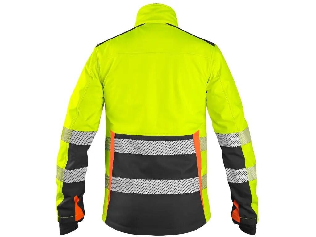Męska ostrzegawcza kurtka softshellowa, odporna na działanie wody i wiatru, kieszeń na piersi zapinana na zamek, segmentowe paski odblaskowe, kontrastujące pomarańczowe i odblaskowe elementy, wewnętrzna kieszeń na piersi, rękawy z wewnętrznymi mankietami, ściągacz w dolnej części, TPU membrana, odporność na przenikanie wody 5 000mm poza strefą szwów, paroprzepuszczalność 3 000g/m2/24 godz. Zalecane zastosowanie: budownictwo, prace drogowe, kierowcy, transport lotniczy i morski, logistyka, kierowcy ciężarówek, policja.