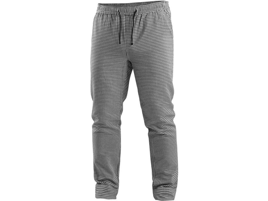 Męskie spodnie kucharskie w popularny wzór pepitki łączą wygodę z funkcjonalnymi detalami przeznaczonymi do codziennej pracy w gastronomii. Elastyczny pas z gumą oraz sznurkiem do regulacji umożliwia łatwe dopasowanie do sylwetki i zapewnia komfort nawet podczas długiego dnia pracy. Przednie kieszenie skośne oraz tylna naszywana kieszeń służą do przechowywania drobnych przedmiotów. Na prawym udzie znajduje się praktyczna kieszeń na pęsetę kucharską lub długopis, dzięki czemu najważniejsze narzędzia są zawsze pod ręką. Z tyłu, poniżej pasa, znajduje się również uchwyt na ściereczkę, który zwiększa wygodę pracy w kuchni. Spodnie są wyposażone w system EASY-PROLONG, który umożliwia łatwe przedłużenie spodni do wyższej sylwetki poprzez rozprucie kontrastowego szwu na nogawkach. Zalecane zastosowanie: kuchnie hotelowe, stołówki zakładowe i szkolne, bistra, szkoły gastronomiczne, zakłady mięsne.