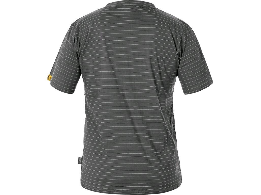 Antystatyczna koszulka z krótkim rękawem, okrągły dekolt, podwójne szwy, boczne szwy. Zalecane zastosowanie: środowiska ESD, obsługa maszyn CNC i robotów.