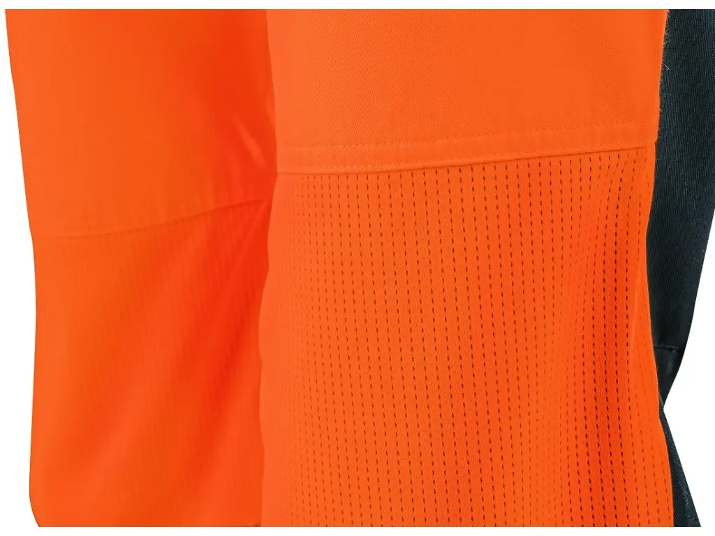 Męskie ogrodniczki ostrzegawcze CXS HALIFAX przeznaczone są do pracy w okresie letnim. Wyposażone są w segmentowe taśmy odblaskowe o szerokości 8 cm, które zapewniają wysoką widoczność, jednocześnie zachowując elastyczność materiału. Regulowane szelki z gumką z tyłu umożliwiają swobodę ruchu i wygodne noszenie. Spodnie mają pas ze szlufkami na pasek i boczne zapięcie na guziki, zakryty zamek błyskawiczny oraz szereg praktycznych kieszeni – kieszeń na piersi z zamkiem, dwie kieszenie przednie, dwie tylne z klapką na rzep oraz prawą kieszeń boczną na zamek. Wzmocnione kolana zwiększają wytrzymałość i umożliwiają włożenie nakolanników, co podnosi komfort pracy w pozycji klęczącej. Po wewnętrznej stronie ud i z tyłu kolan zastosowano materiał siatkowy w celu poprawy mikrocyrkulacji powietrza i odprowadzania ciepła. W połączeniu z bluzą CXS HALIFAX spodnie spełniają normę EN ISO 20471 klasa 3. System EASY-PROLONG umożliwia proste przedłużenie spodni dla wyższej sylwetki. Zalecane zastosowanie: letnia odzież robocza, budownictwo, prace drogowe, logistyka, konserwacja, kierowcy, transport lotniczy i morski, służby ratunkowe, usługi techniczne.