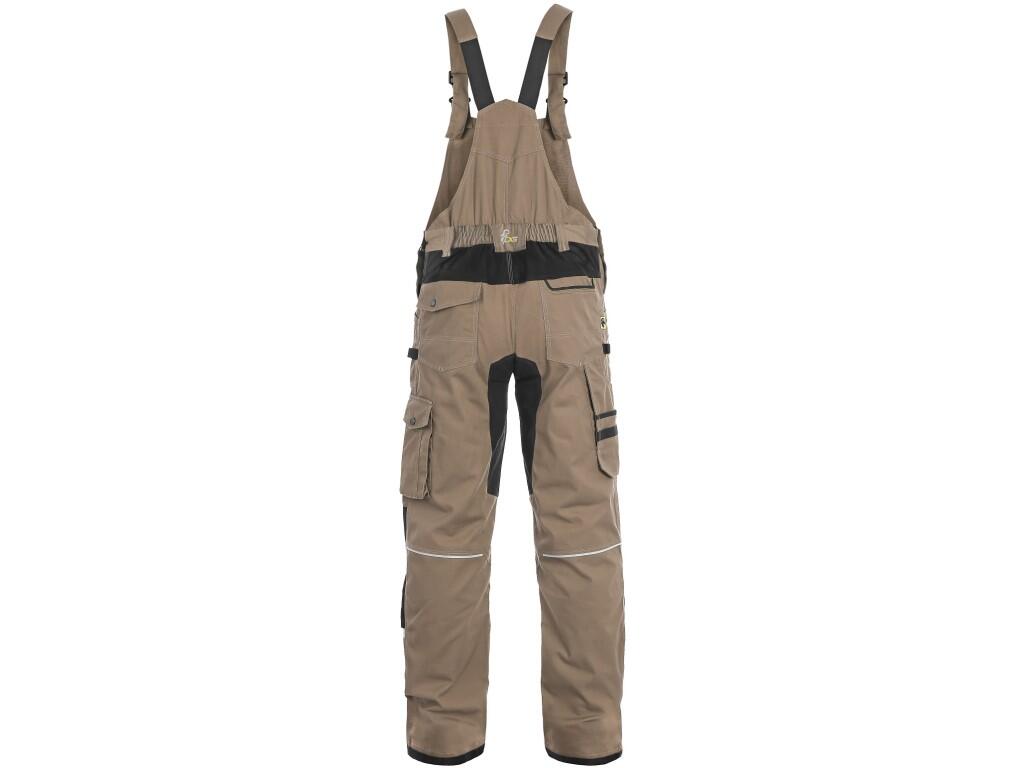 Męskie ogrodniczki robocze, tkanina stretch zapewniająca swobodny ruch, kieszeń na piersi z klapką, szlufki na pasek, z przodu kieszonka na zamek, z boku kieszenie wielofunkcyjne, kolana wzmocnione poliesterem 600D z możliwością włożenia nakolanników, dwie tylne kieszenie - jedna z patką, brzeg nogawek z tyłu wzmocniony poliesterem 600D, szelki z gumą z tyłu, elementy odblaskowe. Zalecane zastosowanie: inżynieria, budownictwo, przemysł lekki, motoryzacja, logistyka, magazyn, spedycja, garaż, konserwacja, montaż, rolnictwo, ogród, hobby. Spodnie są wyposażone w system EASY-PROLONG, który umożliwia łatwe przedłużenie spodni do wyższej sylwetki.
