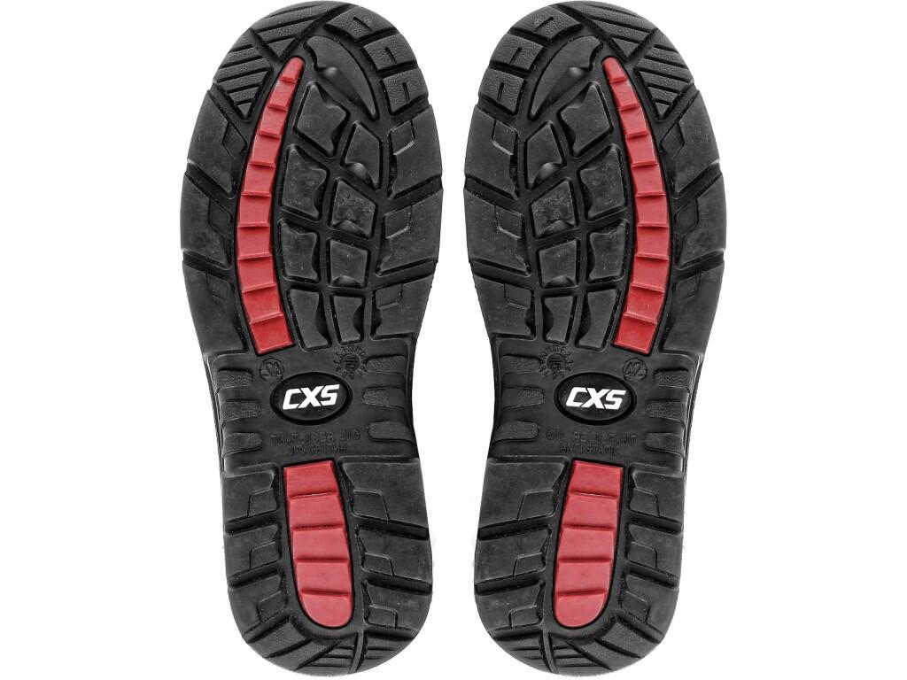 svršek z kvalitní, hrubé štípenkové kůže, krytá pružinka z pružné gumy, gumová podešev, odolná vůči kontaktnímu teplu do 300 °C |