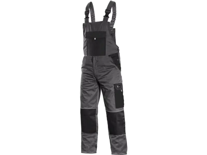Pánské montérkové kalhoty s náprsenkou, z lehkého materiálu, náprsní kapsa s klopou, přední klínové kapsy, boční kapsa s klopou, kapsa na skládací/svinovací metr, zdvojená kolena, zadní jednoduchá kapsa, šle vzadu na gumu, reflexní doplňky. Díky odlehčené gramáži vhodné pro práci nejen v letním období, ale také celoročně ve vytápěných provozech. Doporučené použití: stavebnictví, strojírenství, lehký průmysl, automobilový průmysl, logistika, skladová manipulace, spedice, autoservisy, údržba, montáže, zemědělství, učiliště, zahrada, hobby.