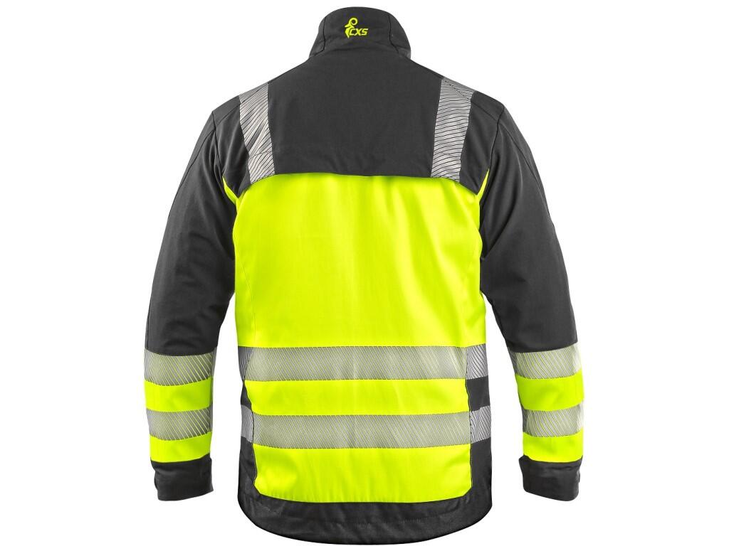 Pánská výstražná blůza se segmentovanými reflexními pruhy o šíři 5 cm. Konstrukce 4-way stretch umožňuje roztahování materiálu ve všech čtyřech směrech a tím i snadný a volný pohyb. Blůza je na exponovaných místech vybavena doplňky z materiálu CORDURA®, rukávy s nastavitelnou manžetou, náprsní kapsou na zip a dvěma skrytými náprsními kapsami na zip, dvěma bočními kapsami na zip, tužkovou kapsičkou na levém rukávu, ventilací v zadní části a bočních částech pod rukávy, vnitřní kapsou na zip a síťovou prodyšnou podšívkou. V pravé náprsní kapse se nachází odnímatelné pouzdro na ID kartu. Doporučené použití: strojírenství, stavebnictví, lehký průmysl, automobilový průmysl, logistika, skladování, spedice, autoservisy, údržba, montáže, letecká a lodní doprava.