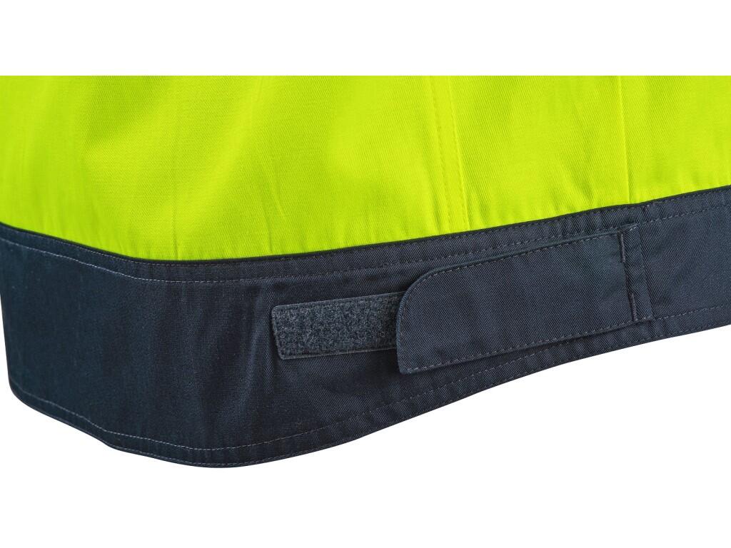 Pánská výstražná blůza CXS HALIFAX je určena pro práci v letním období. Je vybavena segmentovanými reflexními pásky o šířce 5 cm, které zajišťují vysokou viditelnost a přitom zachovávají pružnost materiálu. Blůza má zapínání na zip, které je kryté klopou s kovovými druky. Je vybavena náprsními kapsami s klopou na suchý zip a skrytými kapsami na zip, a také bočními kapsami na zip. Manžety rukávů a spodní lem lze jednoduše utáhnout pomocí suchého zipu. V podpaží a na zádech je použit síťovaný materiál pro lepší mikrocirkulaci vzduchu a odvod tepla. V kombinaci s kalhotami nebo kalhotami s náprsenkou blůza CXS HALIFAX splňuje ochrannou kategorii 3 dle EN ISO 20471. Doporučené použití: letní pracovní oděv, stavebnictví, silniční práce, logistika, údržba, řidiči, letecká a lodní doprava, záchranáři či technické služby.