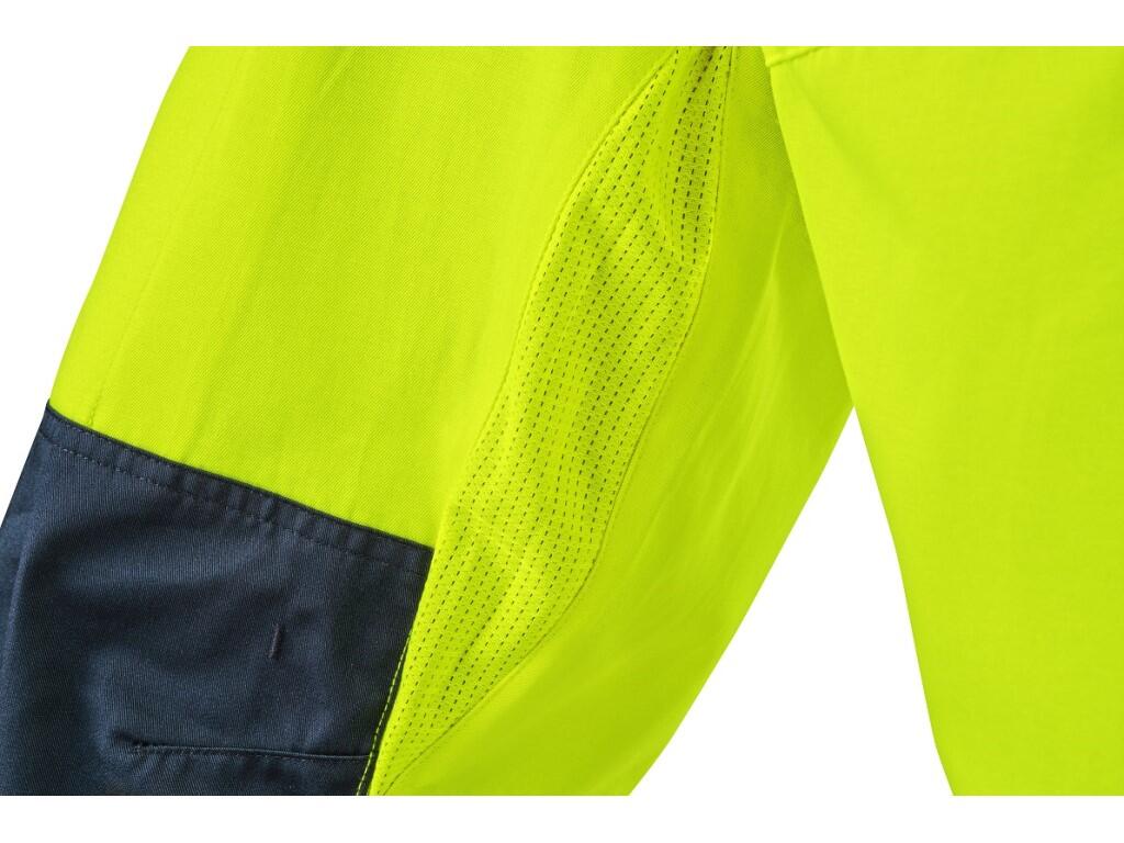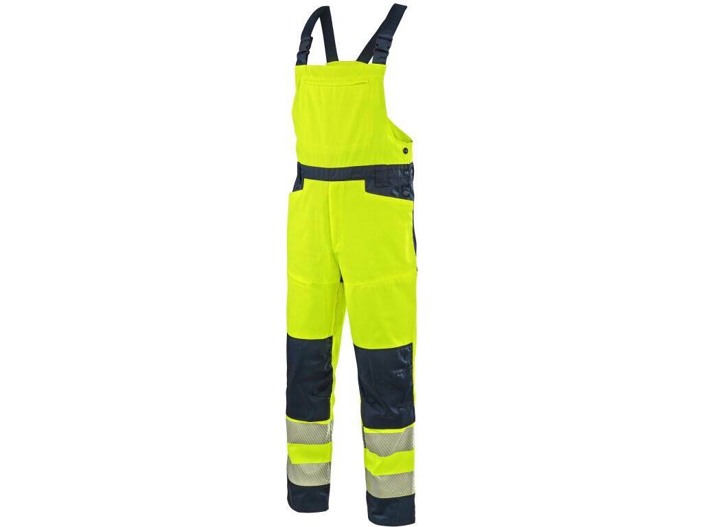 Pánské výstražné kalhoty s náprsenkou CXS HALIFAX jsou určeny pro práci v letním období. Jsou vybaveny segmentovanými reflexními pásky o šířce 8 cm, které zajišťují vysokou viditelnost a přitom zachovávají pružnost materiálu. Regulovatelné šle s gumou v zadní části umožňují volný pohyb a pohodlné nošení. Kalhoty mají pas s poutky na opasek a bočním zapínáním na knoflíky, kryté zapínání na zip a řadu praktických kapes – náprsní kapsu na zip, dvě přední kapsy, dvě zadní kapsy s klopou na suchý zip a pravou boční kapsu na zip. Zdvojená kolena zvyšují odolnost a umožňují vložení kolenních výztuh pro vyšší komfort při práci v kleče. Na vnitřní straně stehen a zadní části kolen je použit síťovaný materiál pro lepší mikrocirkulaci vzduchu a odvod tepla. V kombinaci s blůzou CXS HALIFAX splňují ochrannou kategorii 3 dle EN ISO 20471. EASY-PROLONG systém umožňuje prodloužení délky nohavic na vyšší postavu, a to uvolněním švu na nohavicích. Doporučené použití: letní pracovní oděv, stavebnictví, silniční práce, logistika, údržba, řidiči, letecká a lodní doprava, záchranáři či technické služby.