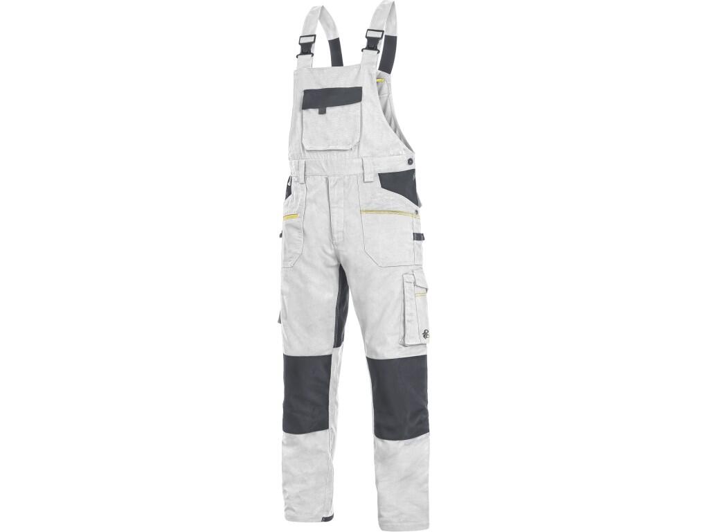 Pánské montérkové kalhoty s náprsenkou, strečová tkanina umožňující volný pohyb, náprsní kapsa s klopou, pas s poutky na opasek, přední kapsy s kapsou na zip, multifunkční kapsy na obou stranách, kolena zesílena 600D polyesterem s možností vložení kolenních výztuh, dvě zadní kapsy - jedna s klopou, zadní spodní lem nohavice vyztužen 600D polyesterem, šle s gumou vzadu, reflexní doplňky. Doporučené použití: strojírenství, stavebnictví, lehký průmysl, automobilový průmysl, logistika, skladová manipulace, spedice, autoservisy, údržba, montáže, zemědělství, zahrada, hobby. Kalhoty jsou vybaveny EASY-PROLONG systémem, který umožňuje snadné prodloužení střihu na vyšší postavu uvolněním švu na nohavicích.